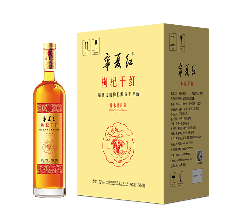 采用百分百寧夏中寧枸杞,為保證果實清新度,均在涼爽的早晨采收,枸杞經過2次清洗,進行榨汁,采取低溫發酵,恒溫陳釀,再經法國橡木桶窖藏,每種產品按照原料成分和不同的陳釀時間區分。經過橡木桶窖藏后,金黃色的酒體,更加晶瑩剔透、有光澤;除了枸杞果香外,增加了橡木香,更加復雜、和諧;酒體既保留了清香典雅的枸杞果香,又富有厚重的單寧口感,締造了具有自身風格與眾不同的酒類新貴。優秀釀酒大師精心釀造而成,更營養,更健康, 口感更好,品質更有保證!