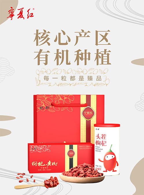 寧夏紅枸杞,源自世界枸杞原產地 -- 寧夏中寧核心產區石喇叭產區,寧夏紅公司與中寧政府建立枸杞合作社,選擇中寧能種出最好枸杞的小產區合作建立基地,顆粒飽滿,色澤紅潤,果肉厚實。每一顆枸杞都經過嚴格的挑選,按照出口歐盟的食品標準種植枸杞,保證寧夏紅生產的每一顆枸杞,放心、安全。中寧位于北緯37.5°,與法國波爾多位于同一緯度帶,光照充足,日夜溫差大,利于枸杞糖分的積累;中寧枸杞肉厚、味甘、質柔,營養價值遠遠高于全國其他的產區。